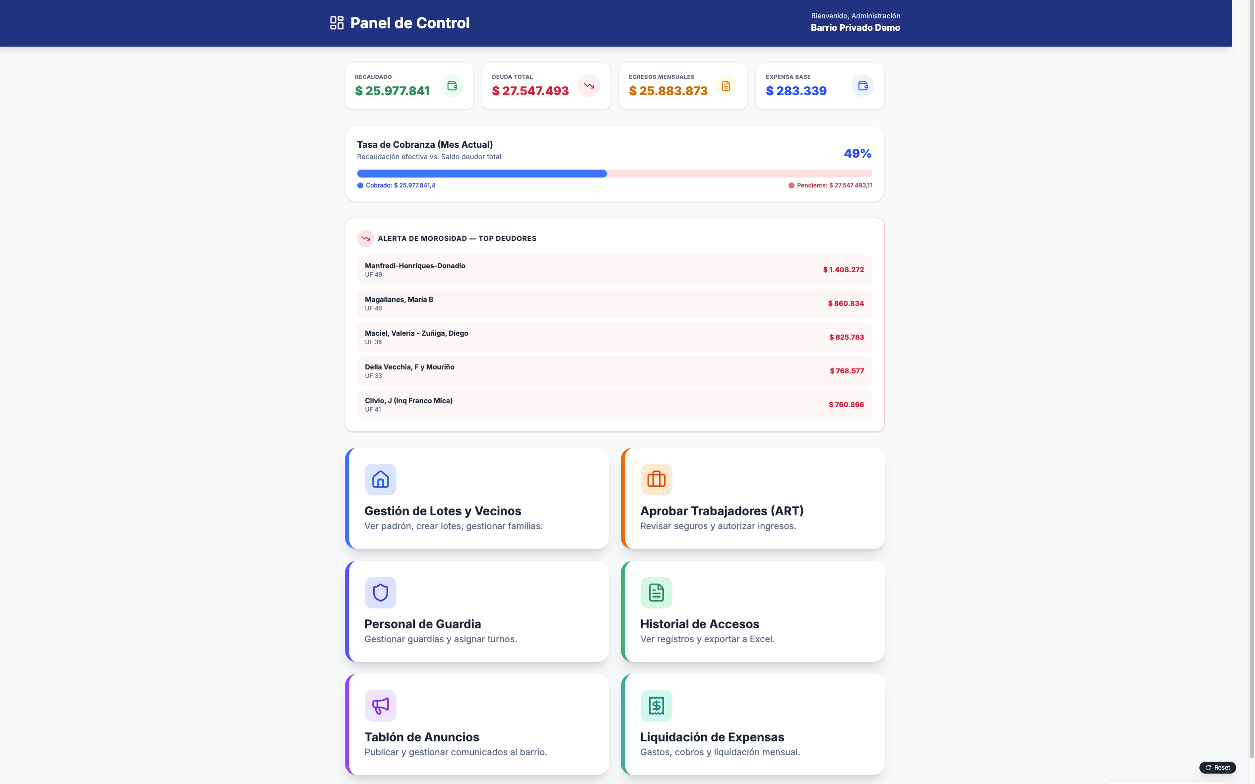 Gestioná expensas, vecinos, trabajadores y reportes completos.